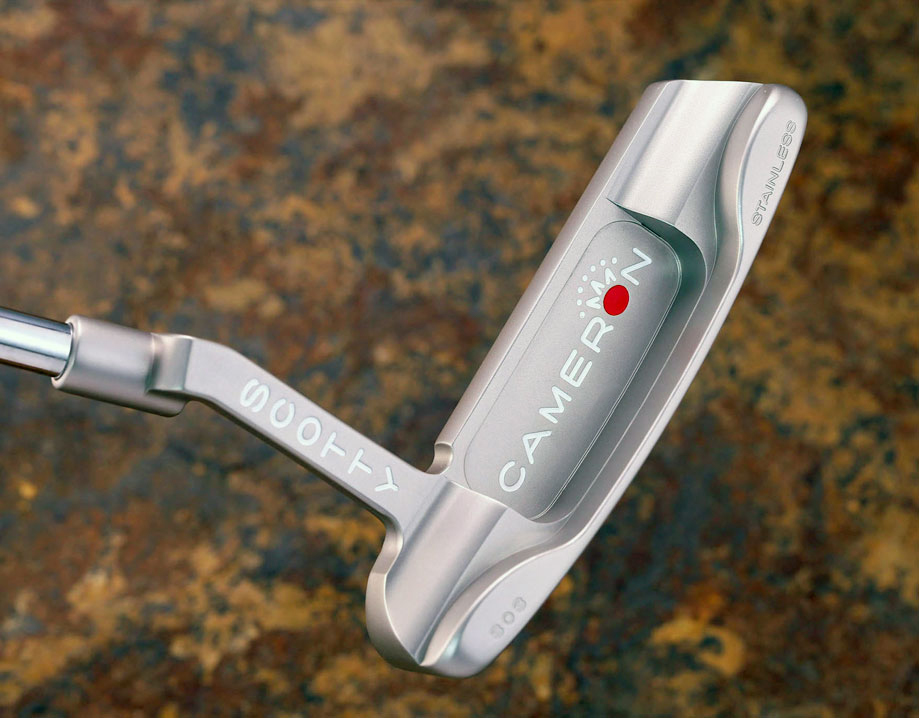 The Newport model draws its inspiration from the Classic 1, one of the first putters produced by Cameron Golf International in late ‘92, and made famous in the ‘93 Master’s win. The Studio Stainless Newport is a breed apart. The entire stainless series is milled from 303 stainless steel, which has a winning reputation on Tour with soft and responsive feedback giving the putters solid, controlled feel. The Newport was refined in the Studio making it slightly wider from front to back with a thinner topline and more radiused weight bumps leading down the back flange. This gives the putter a softer, less mechanical look and still retains the 1/4 toe hang for optimal toe flow. The finish, a soft beaded mist, eliminates glare and the single sight-line makes for perfect alignment. Scotty’s love of 1950’s industrial design inspired the graphics and red color scheme on the headcover and shaft band.