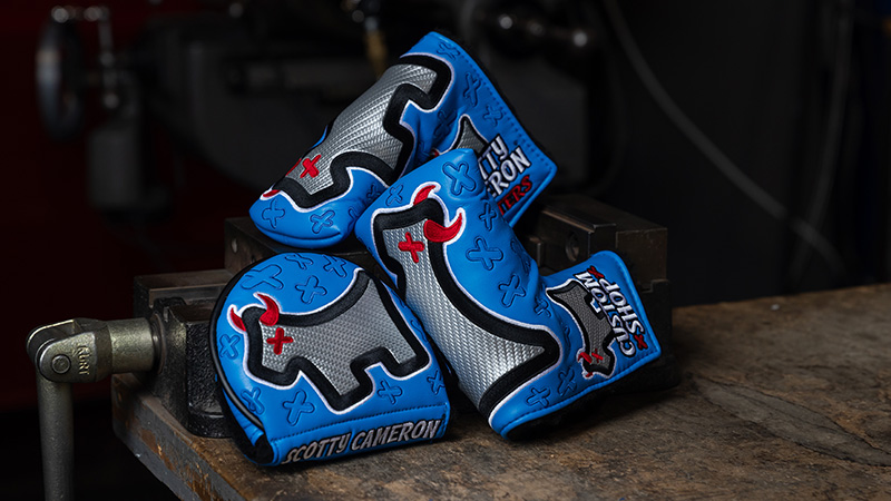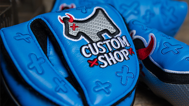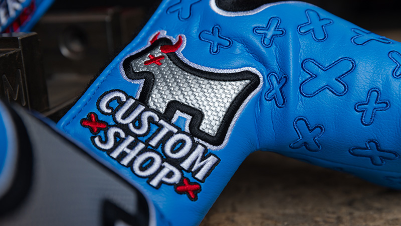 New blue Junkyard Dog headcovers are now available in Scotty's Custom Shop.